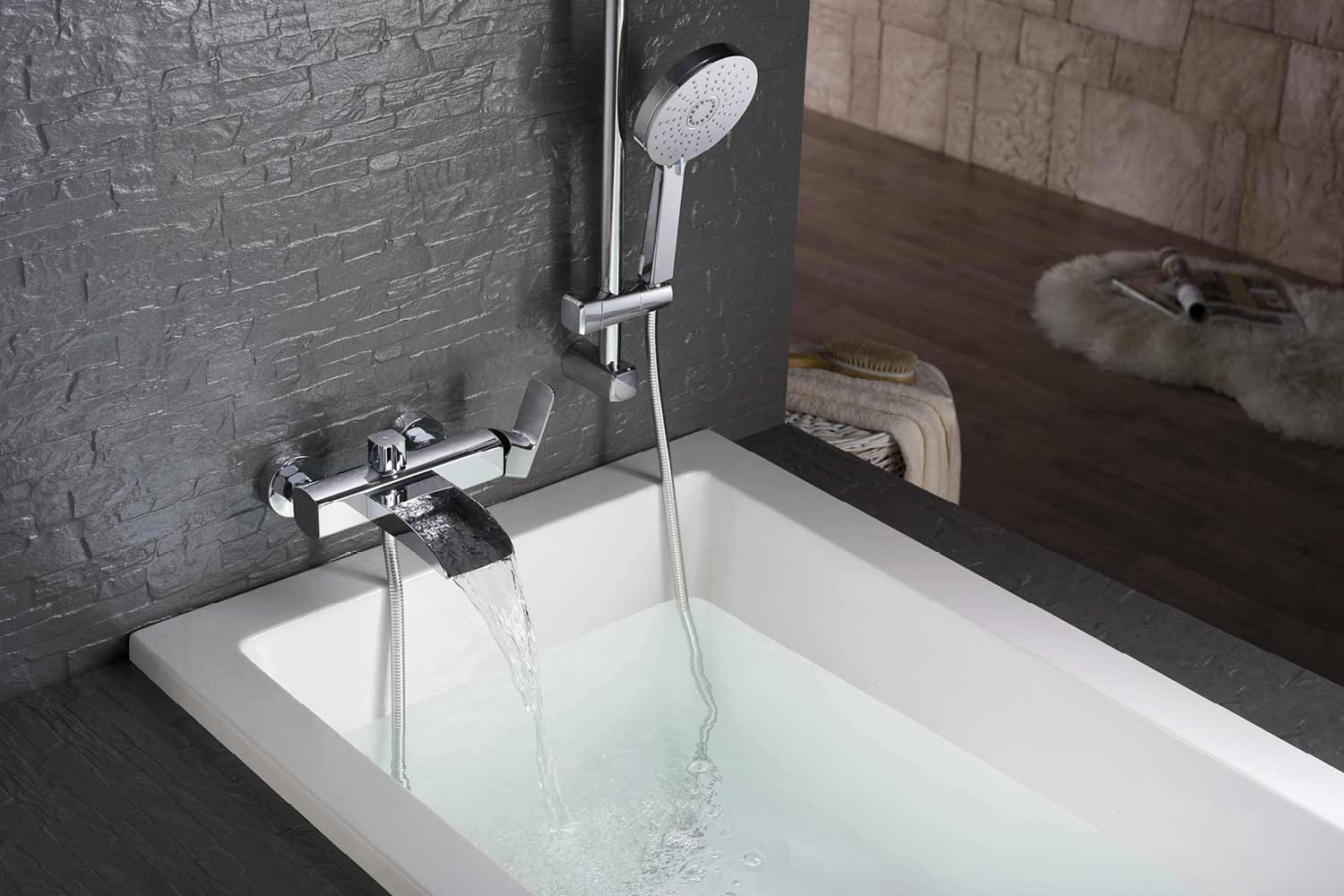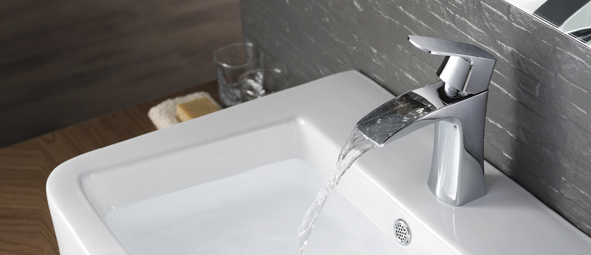 The CASCADE Collection is defined by its open waterfall spout, offering a natural and graceful water flow that enhances the experience in any bathroom.