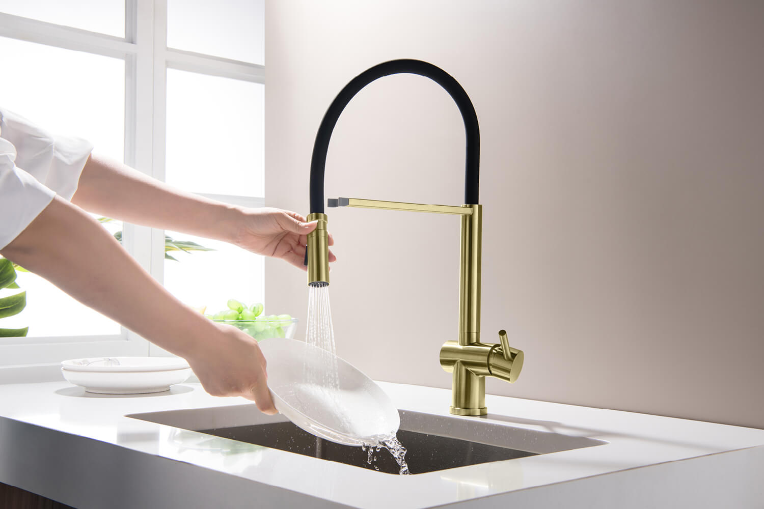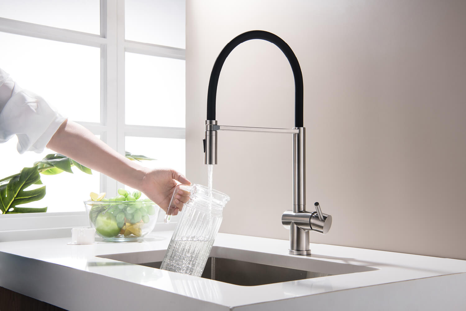The ARCUS Kitchen Faucet Collection features a sleek, curved design that combines elegance with modern functionality. Its ergonomic structure offers both style and practicality, making it ideal for kitchens that demand both performance and visual appeal. With its smooth, easy-to-use spout and contemporary finishes, the ARCUS faucet brings a touch of sophisticated simplicity to your kitchen space.