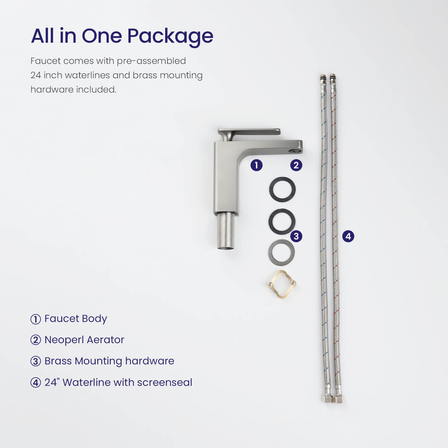 Sleek sophistication meets modern design in the Aquavit Apple Series. Featuring a long, streamlined handle and a softly curved square body, this faucet collection exudes contemporary elegance. Its minimalist aesthetic and graceful form make it a perfect choice for those seeking style and functionality in their bathroom or kitchen spaces