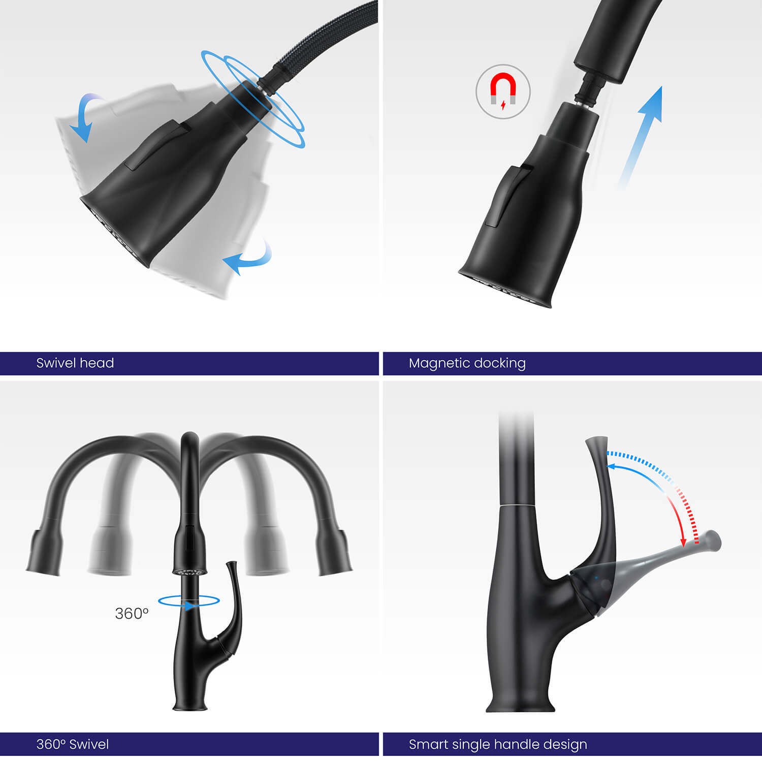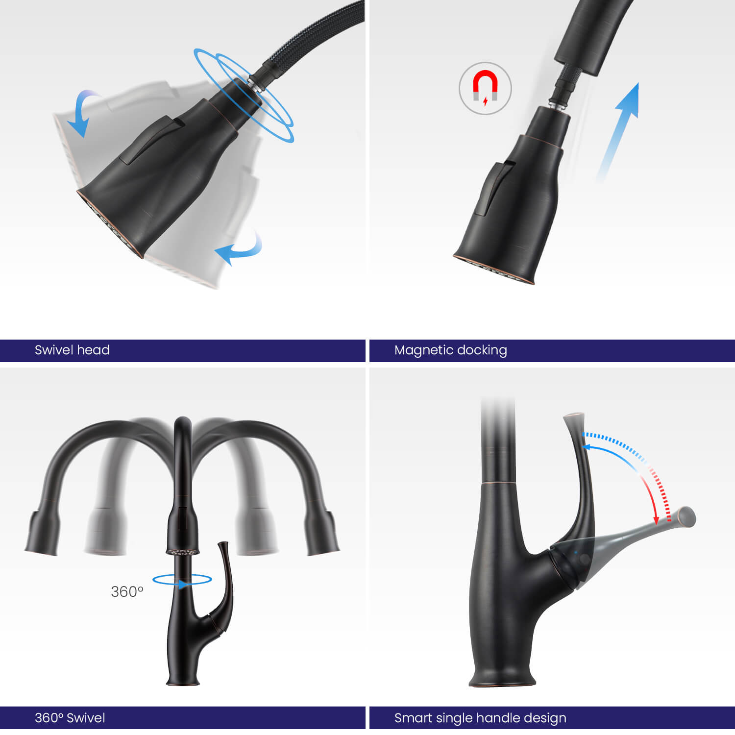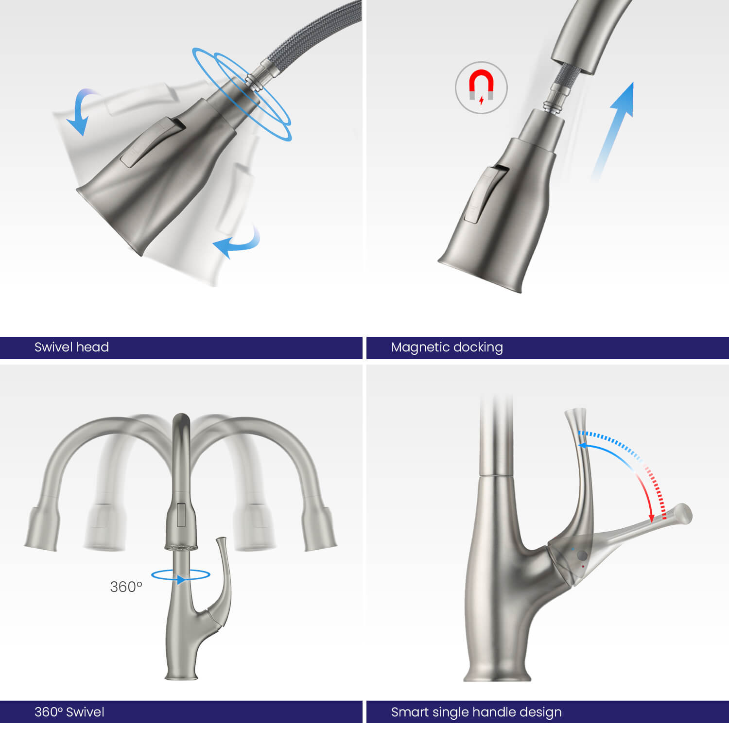 - Flexible 360° Spout: SUS304 swivel spout allows full sink coverage and easy handling of everyday tasks