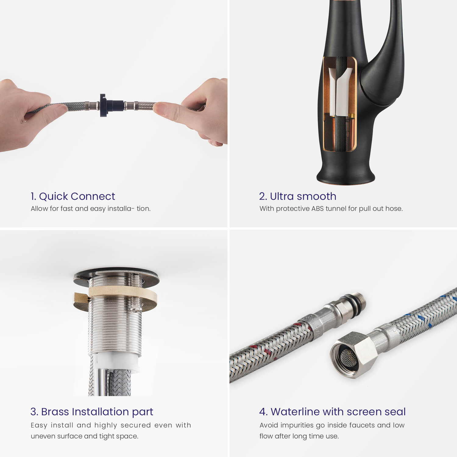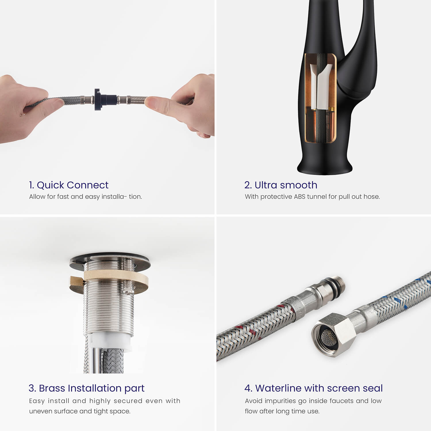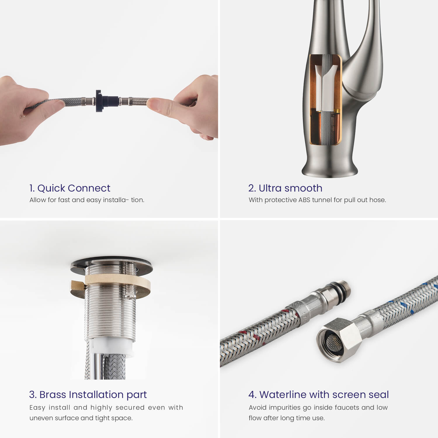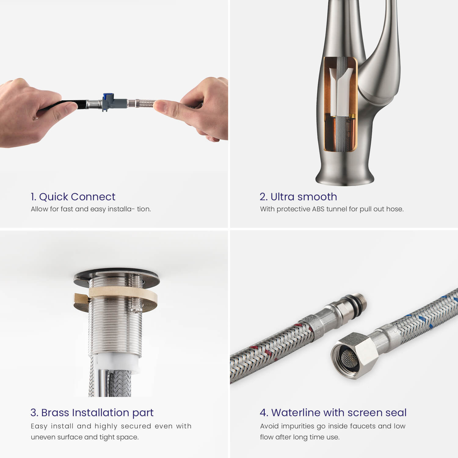 - Flexible 360° Spout: SUS304 swivel spout allows full sink coverage and easy handling of everyday tasks