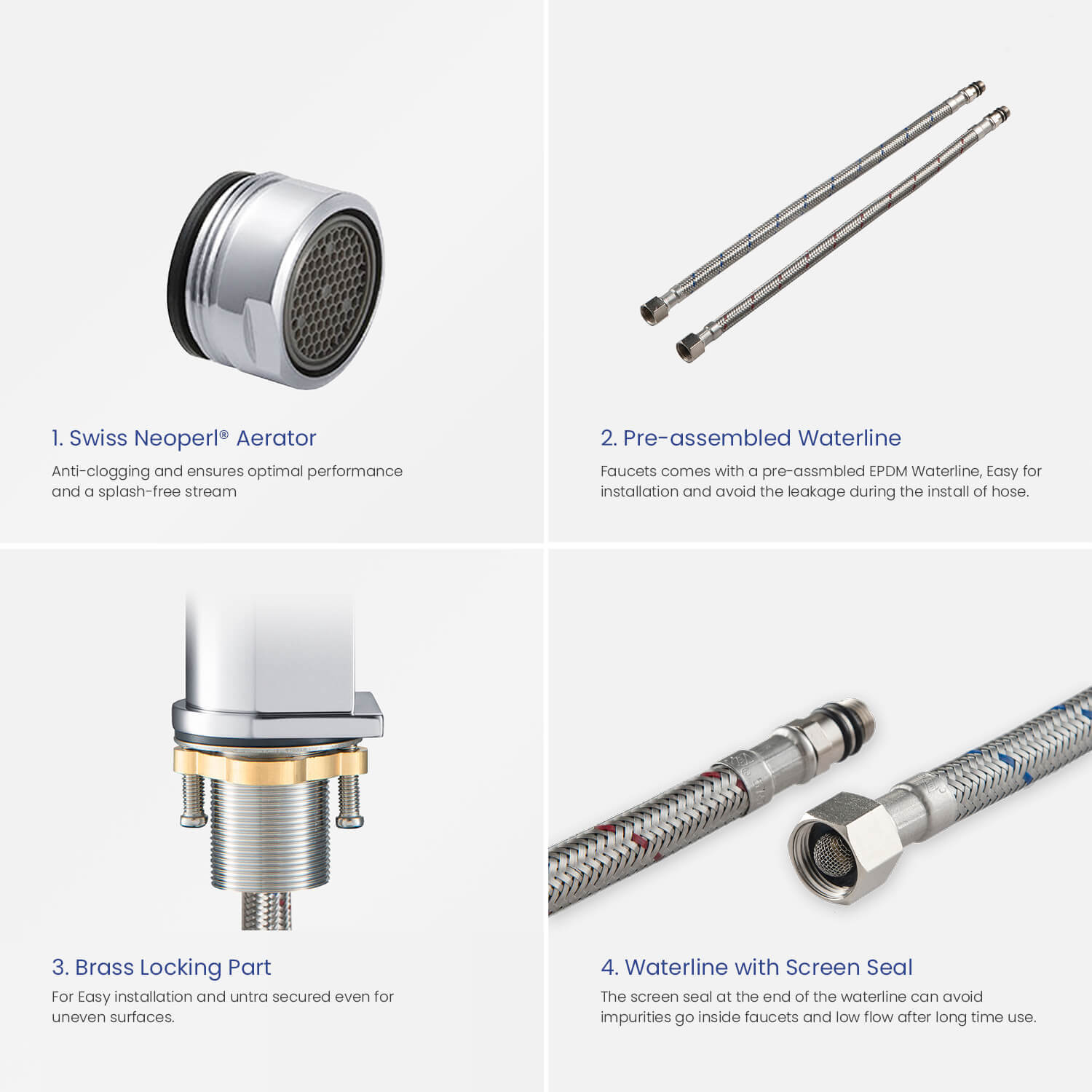 - Durable pre-attached waterlines and all mounting hardware are included for easy installation