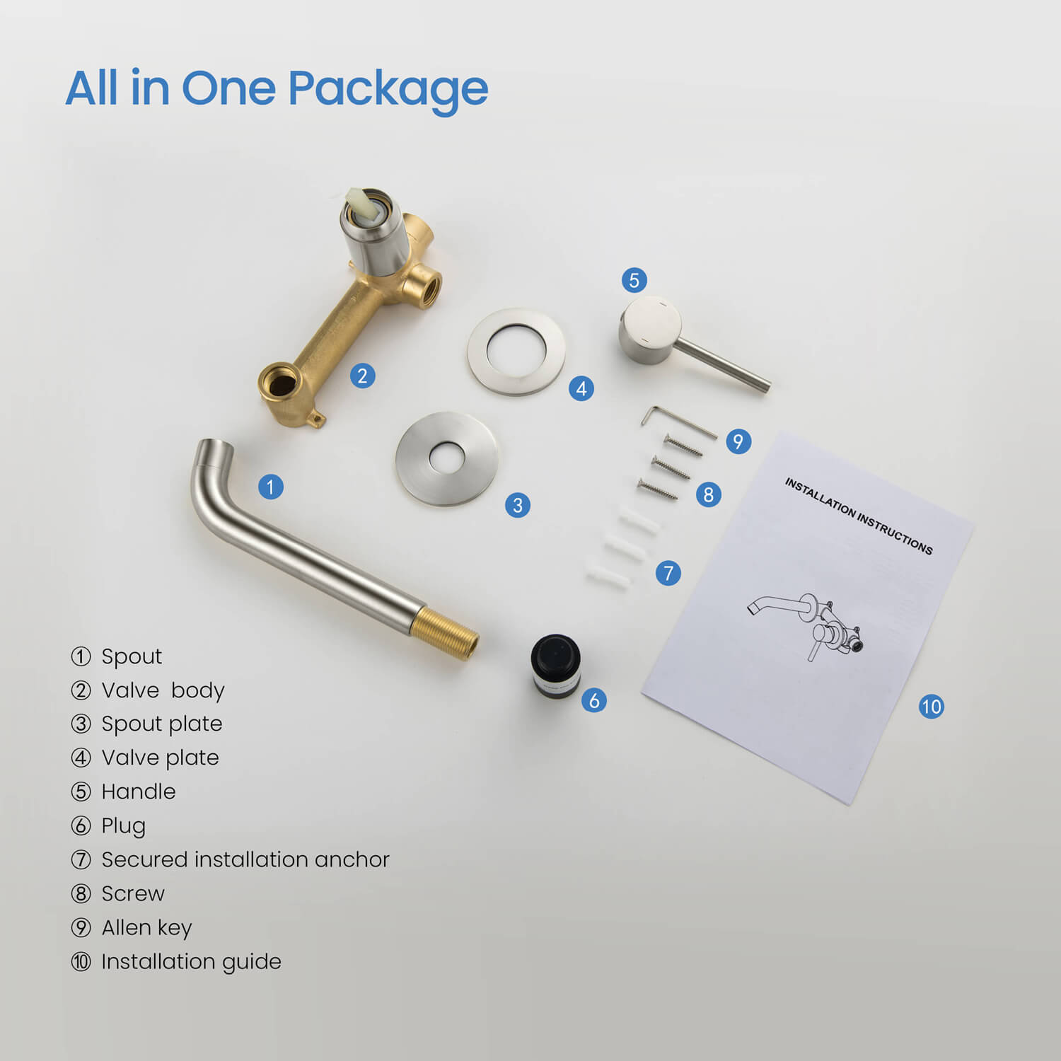 • Premium Solid Brass Construction: The concealed valve and spout are crafted from solid brass for maximum durability and long-lasting performance.