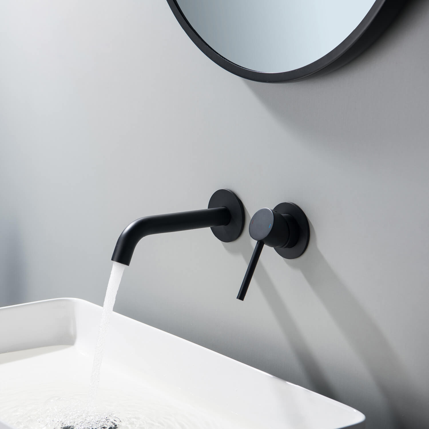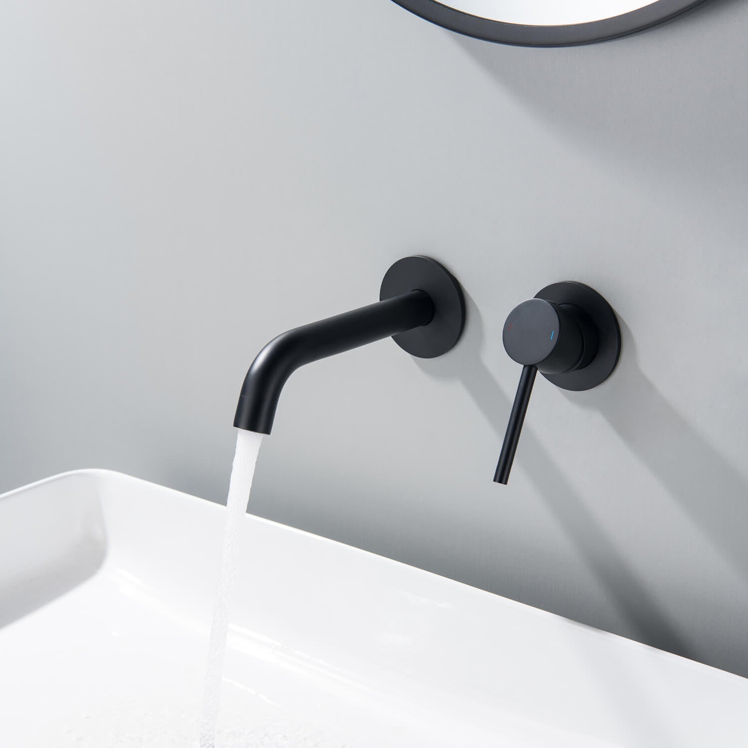 The Aquavit Circular wall-mounted basin faucet combines minimalist design with exceptional functionality. Featuring a sleek geometric profile, it is perfect for modern bathrooms seeking a clean and stylish look. Crafted from premium materials, this faucet ensures durability and reliable performance. The hidden installation enhances the streamlined aesthetic, making it an ideal choice for any contemporary setting.
