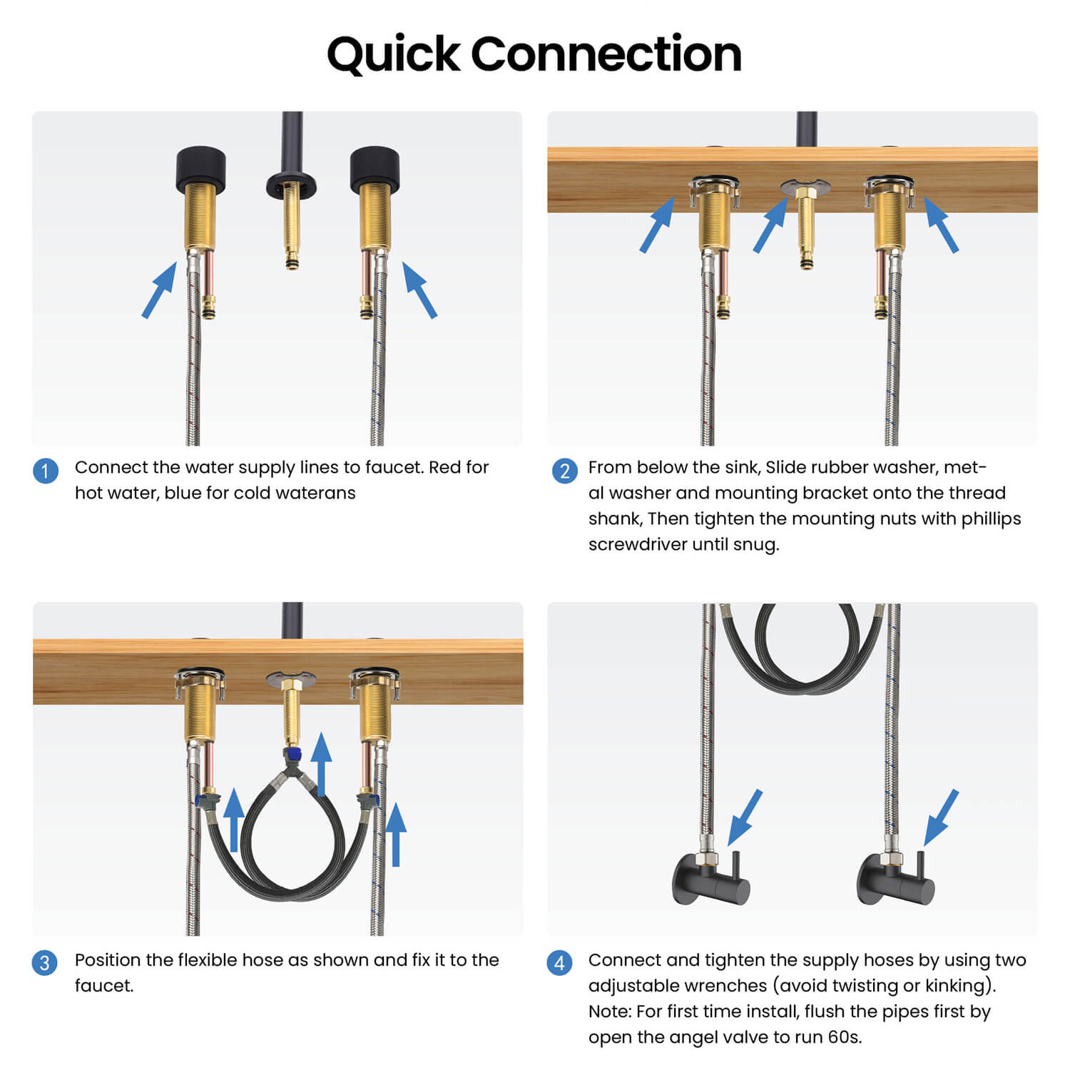 - Ergonomic Zinc Alloy Handles: Designed for comfortable grip and precise control over water temperature and flow.