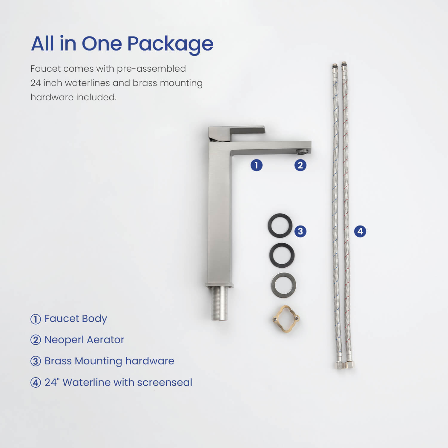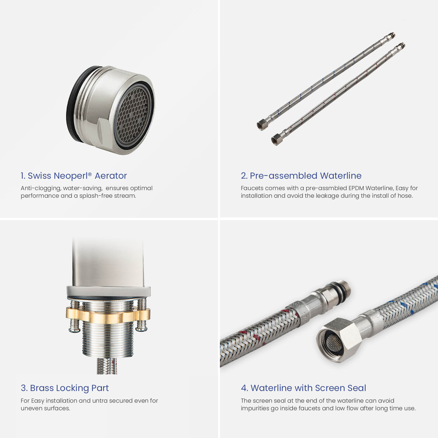 - Durable pre-attached waterlines and all mounting hardware