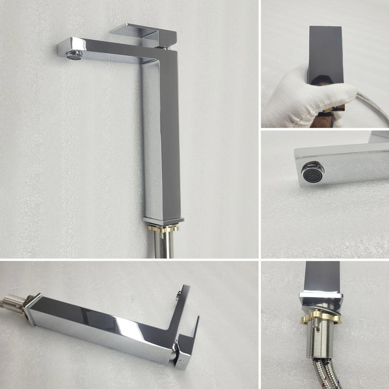 With a modern square design that exudes both simplicity and sophistication, the Aquavit Cube basin faucet brings a clean, geometric elegance to your bathroom. The precise lines of the square faucet body transition seamlessly into a linear spout, while a sleek single-lever handle provides effortless temperature and flow control.