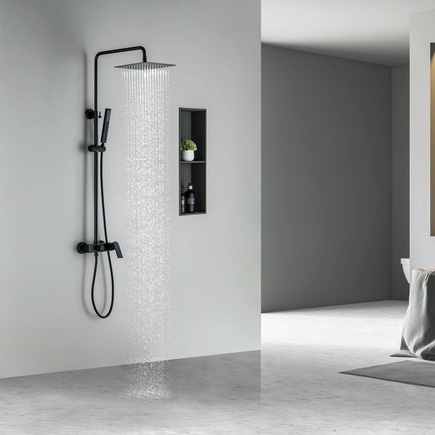 Generous SUS Head Shower: Equipped with a spacious 250x250mm SUS head shower, this design offers a luxurious and enveloping water spray, perfect for a revitalizing shower experience.