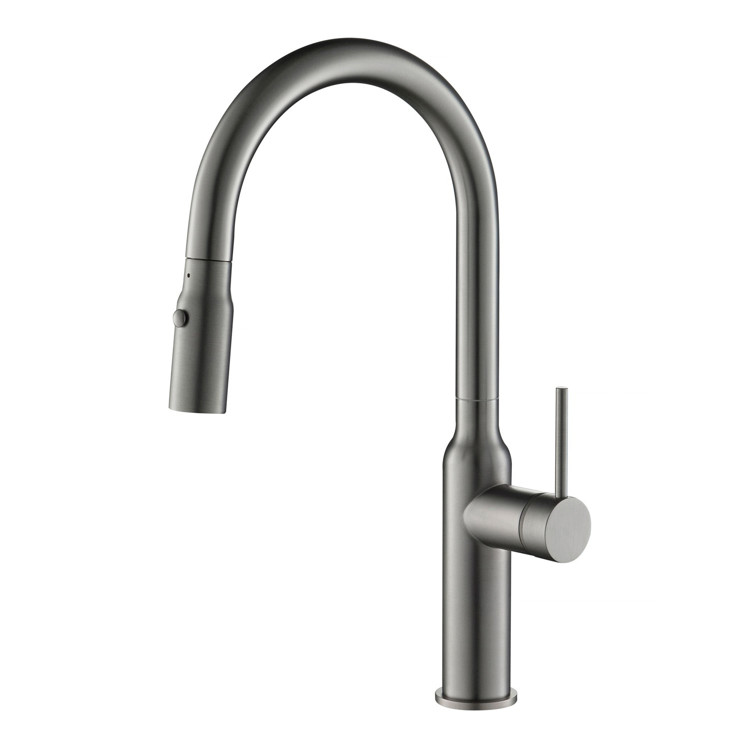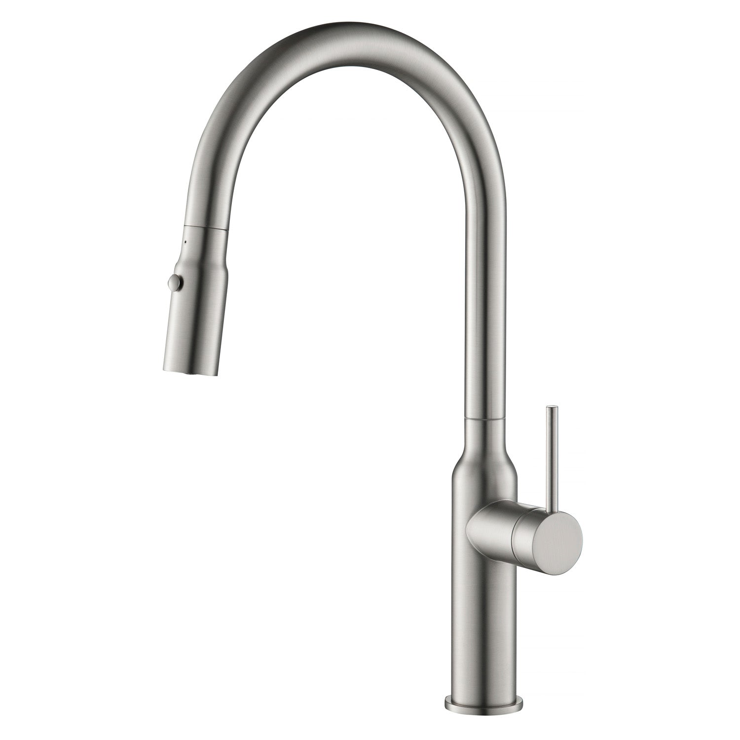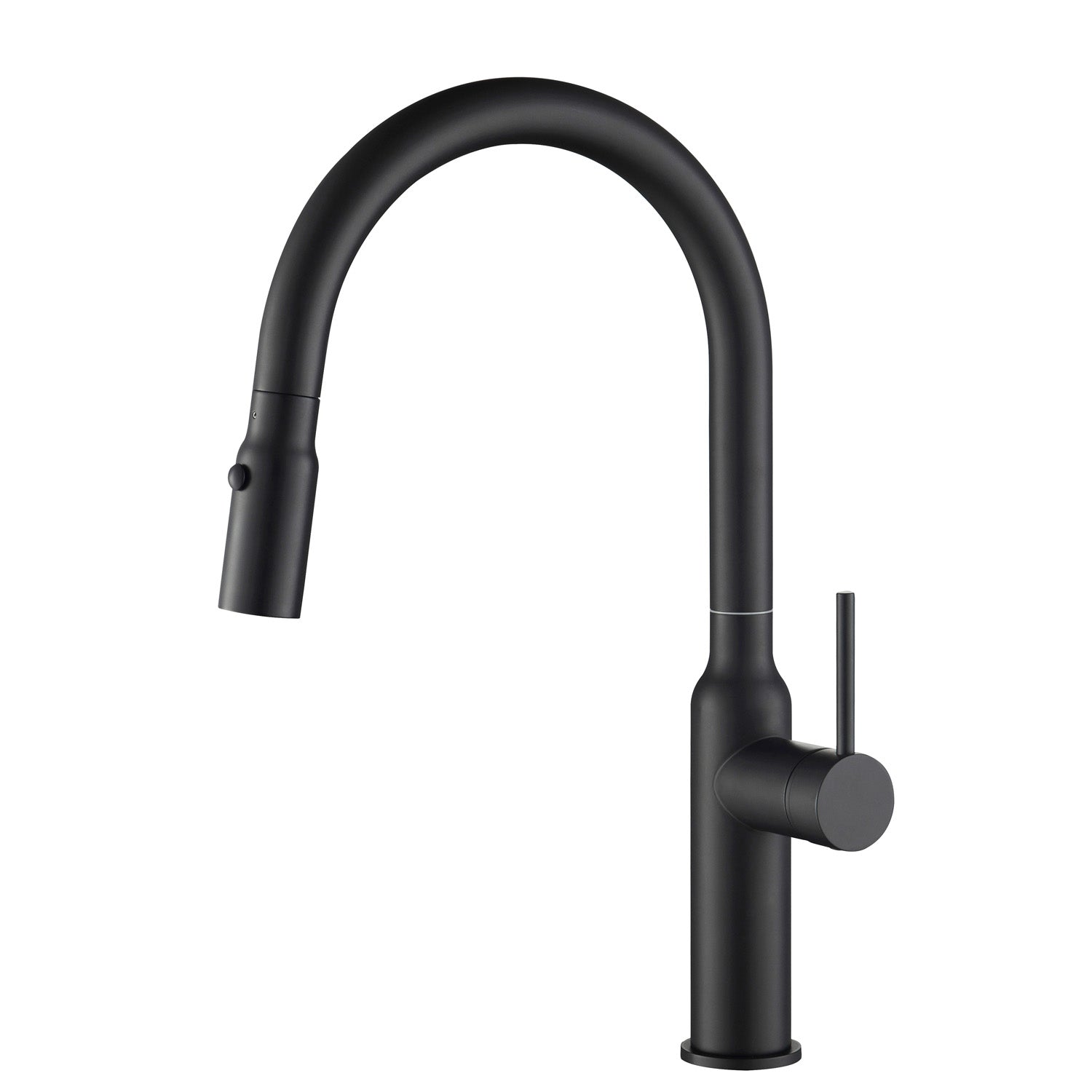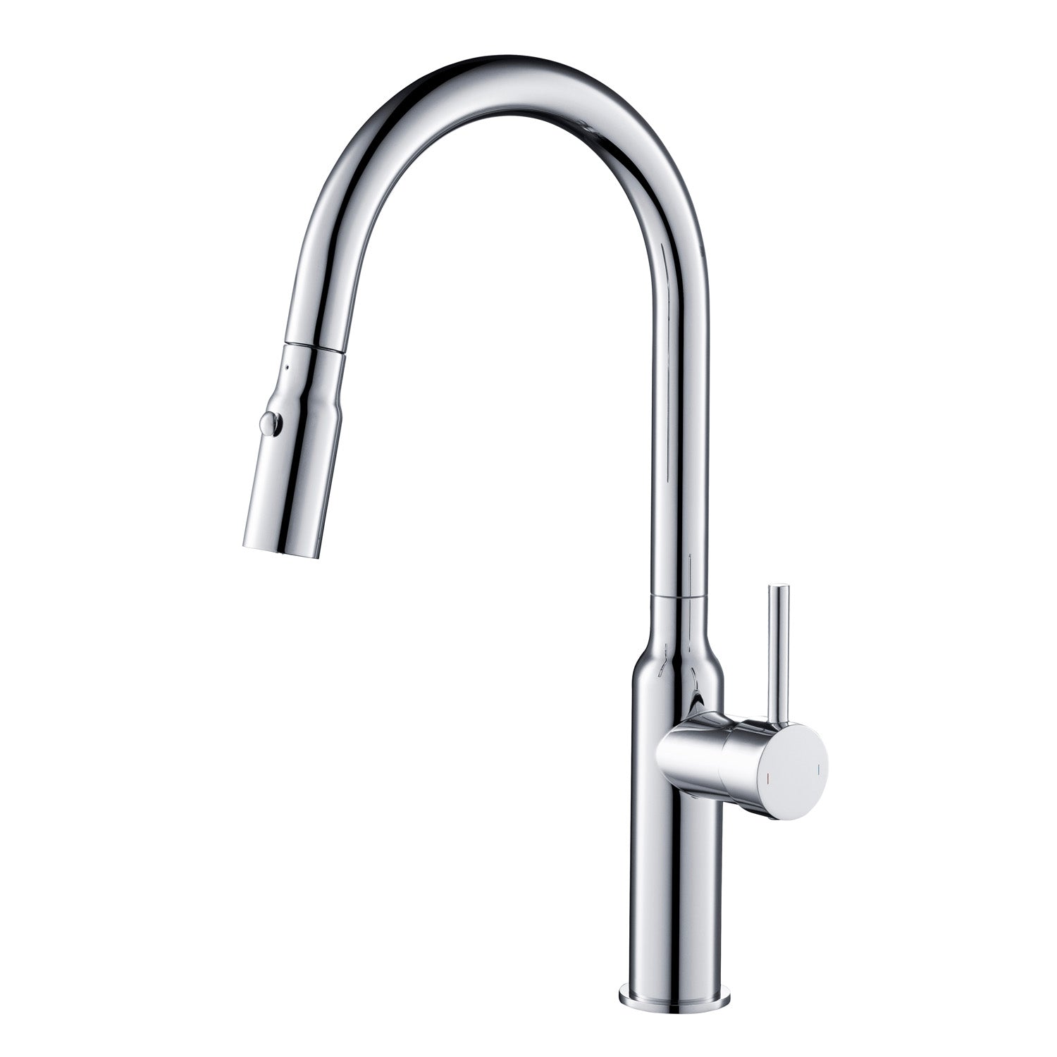 Single Handle Pull Down Kitchen Faucet with Sculptural Brass Body KF12101