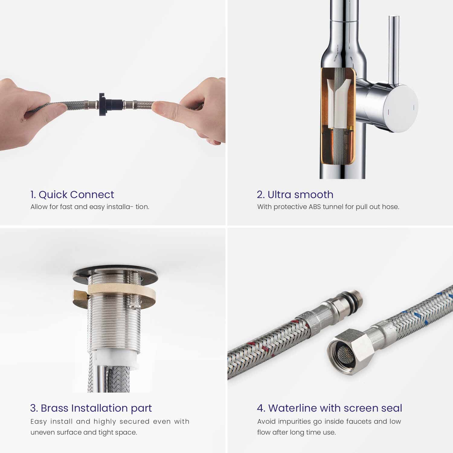 • 360° Swivel Flexibility: The SUS304 spout rotates 360° for maximum flexibility, allowing you to reach all areas of your sink and handle various kitchen tasks with ease.