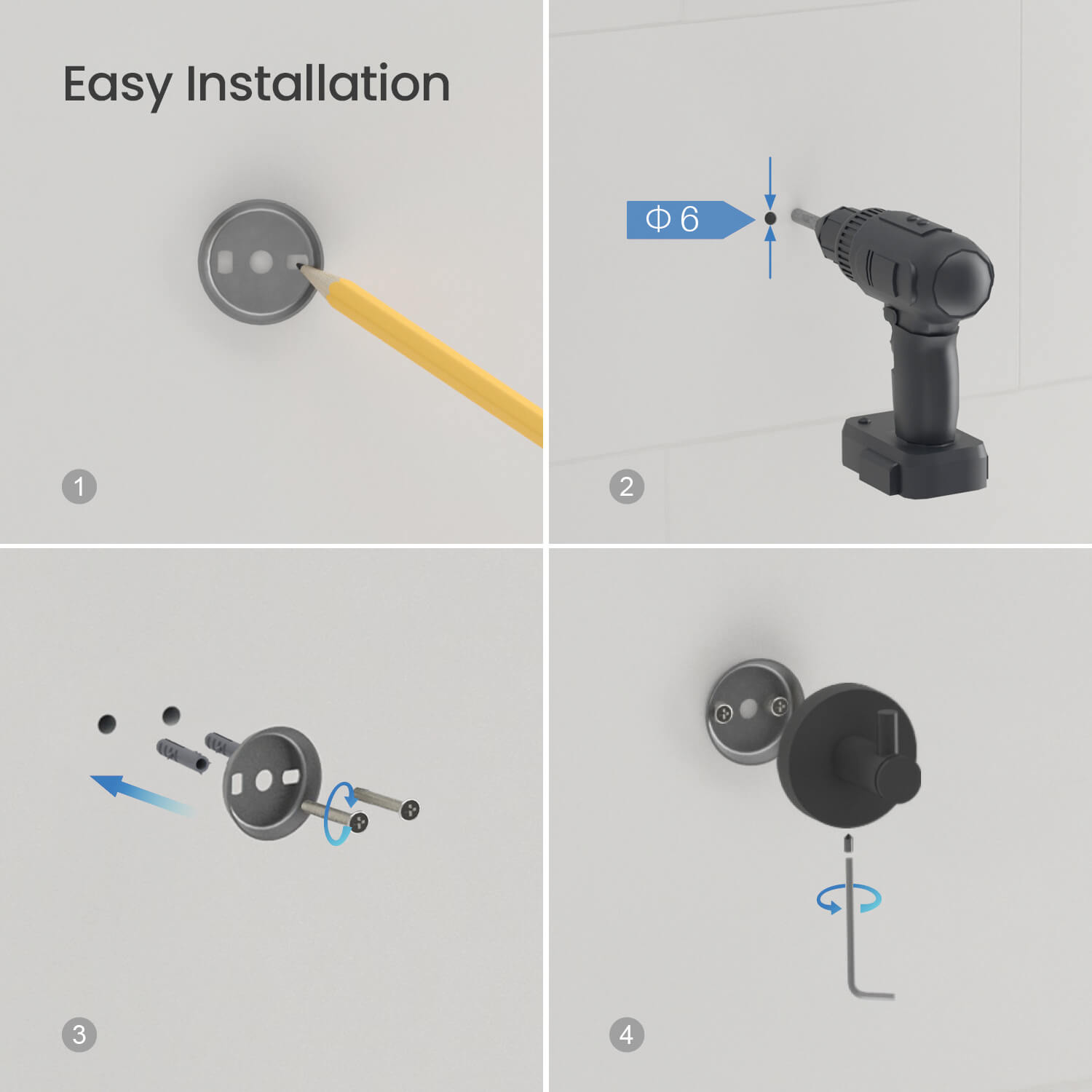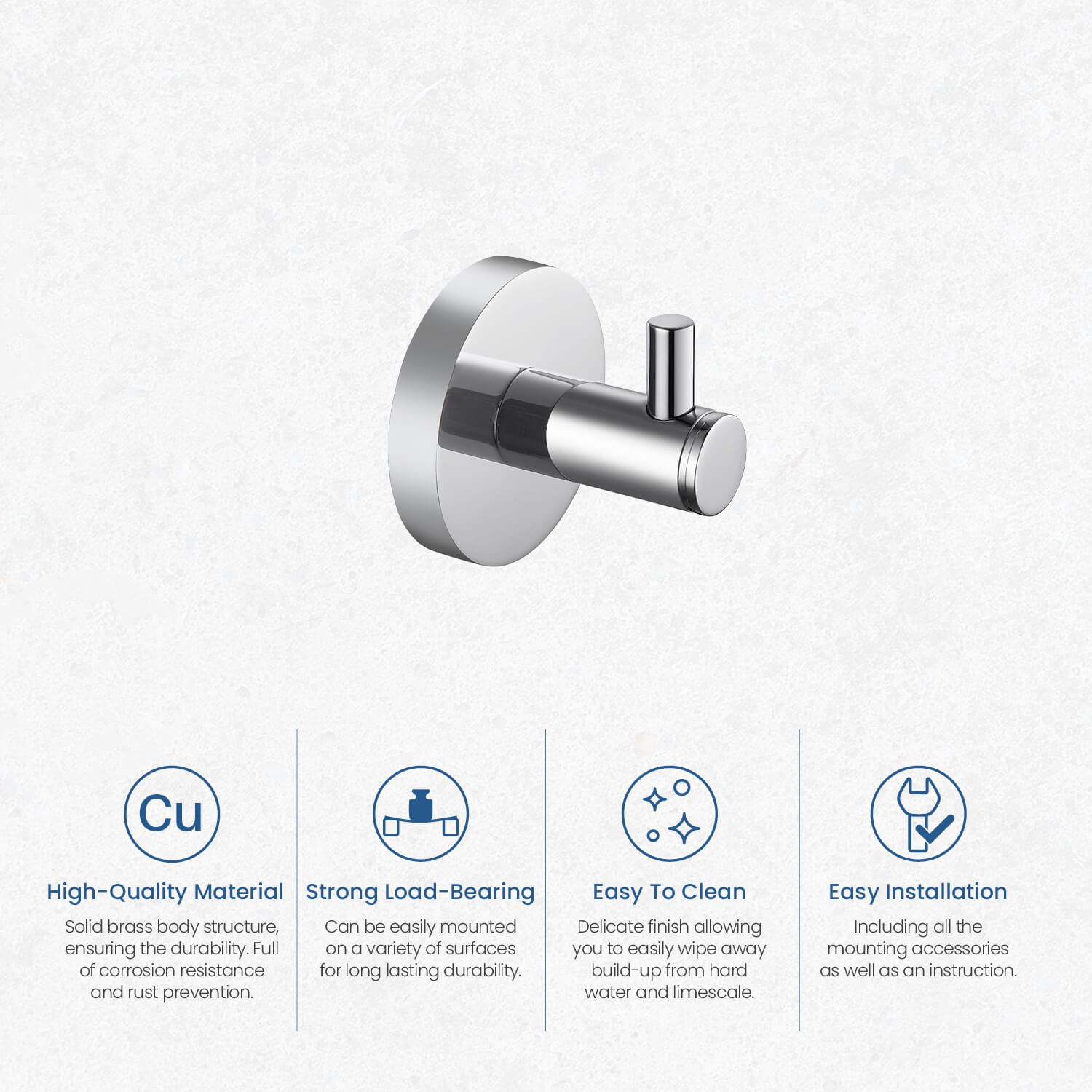 • Sleek and Minimalist Design: The contemporary round shape and smooth finish make this robe hook a perfect addition to any bathroom décor, blending seamlessly with modern or classic interiors.
