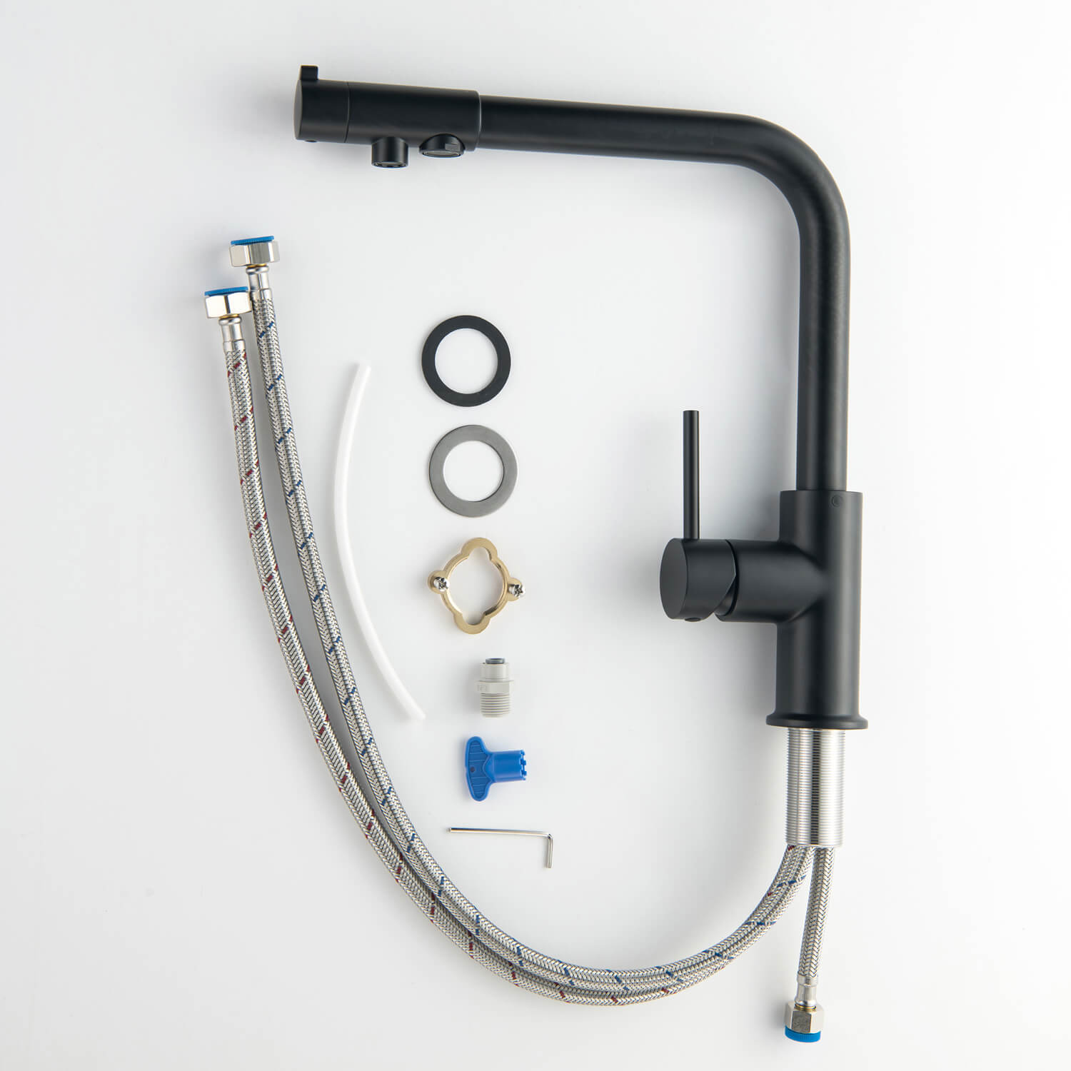 • Standard Water Filter Compatibility: This faucet is compatible with most standard water filters, ensuring that you can easily pair it with your preferred filtration system for cleaner, healthier water.