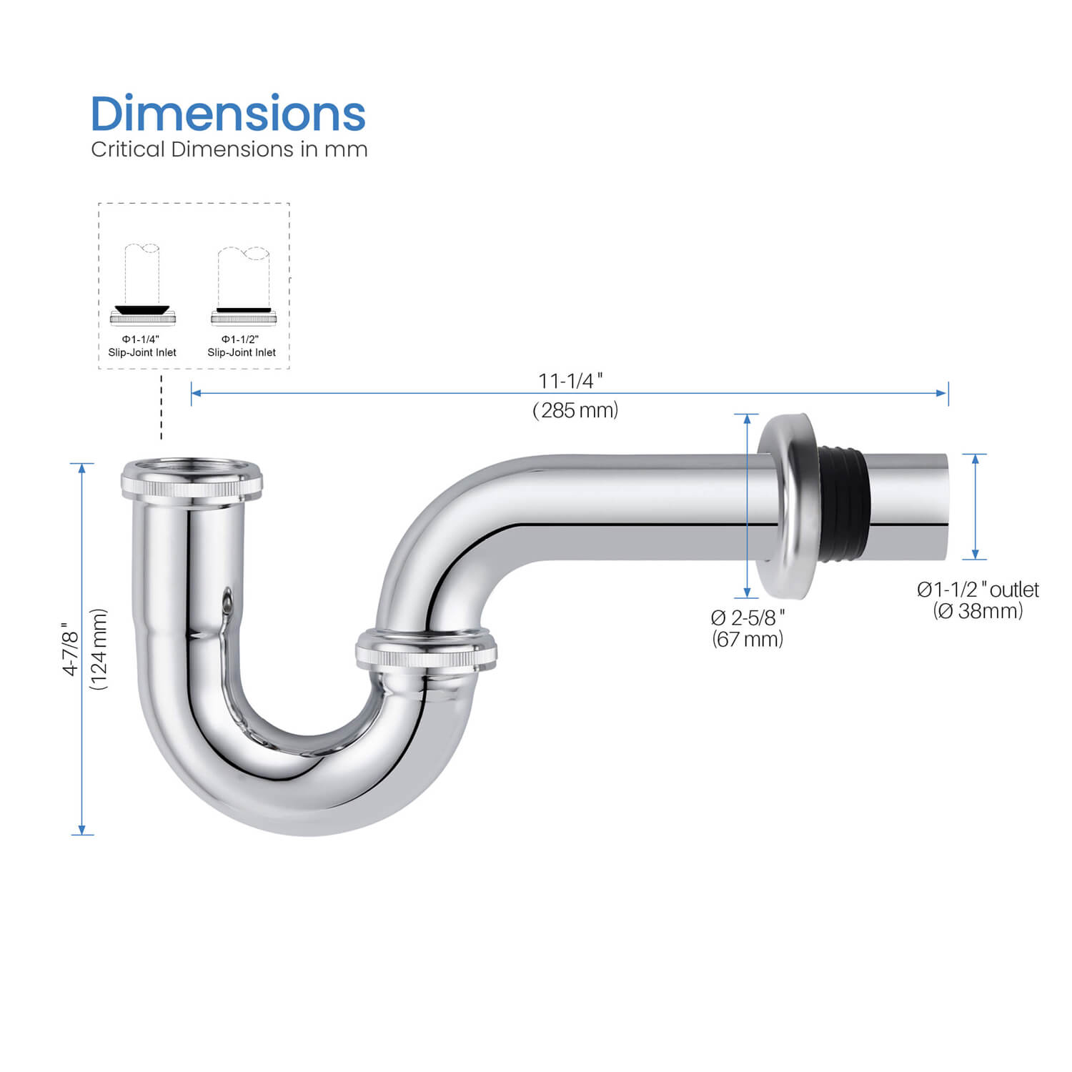 • 1-1/4" diameter slip-fit inlet