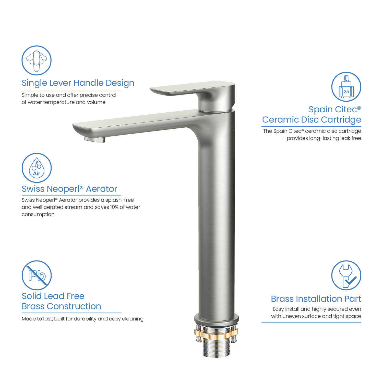 - Spain Citec ceramic cartridge ensures life-long trouble free service