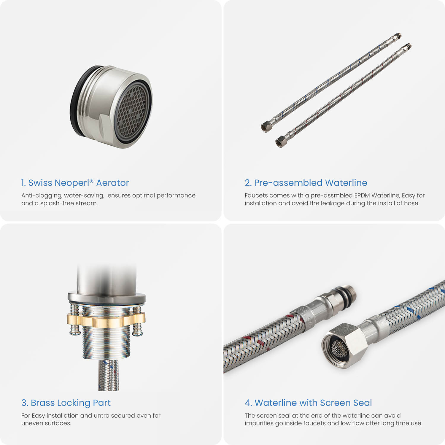 - Durable pre-attached waterlines and all mounting hardware