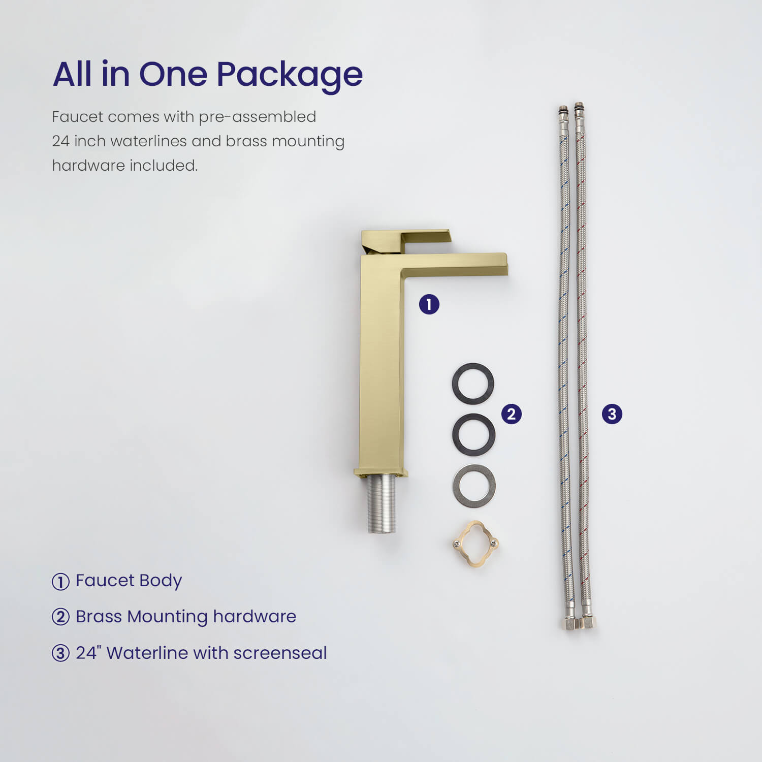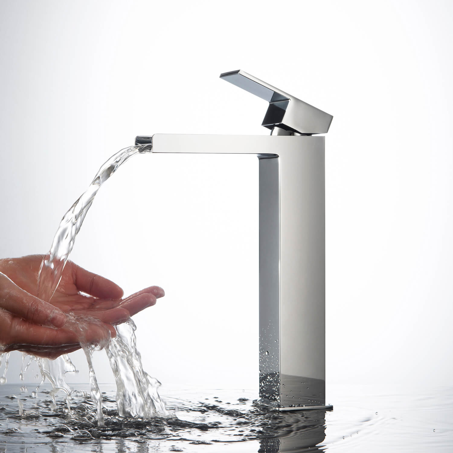 Elevate your bathroom aesthetics with the Aquavit Waterfall Series, featuring a stunning square design and an open spout that creates a captivating waterfall effect. Crafted from premium brass, this faucet combines modern elegance with lasting durability. Perfectly blending form and function, it transforms any space into a sanctuary of contemporary luxury.